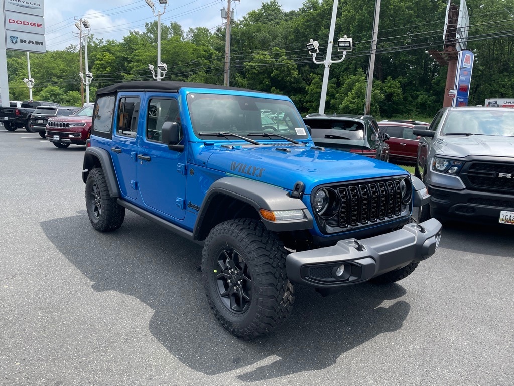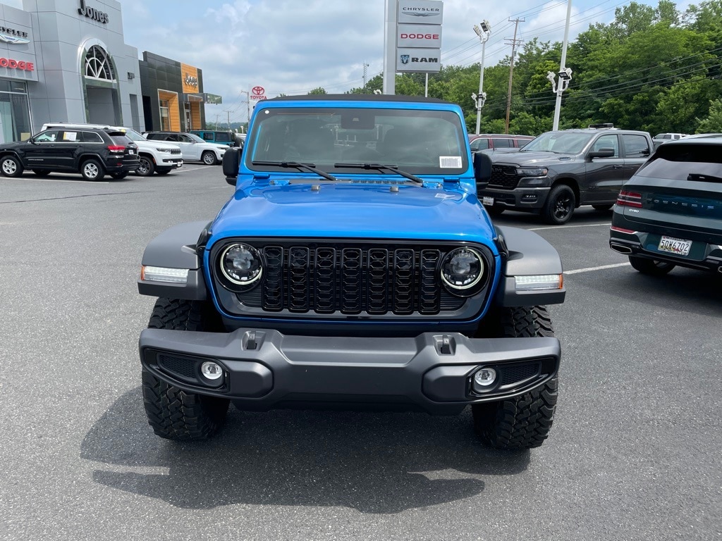 Convenience Group (2-Door Passive Entry, Front Door Locks, Air Conditioning w/Auto Temperature Control, Air Filtering, Cluster 7.0" TFT Color Display, Emergency/Assistance Call, Heated Front Seats, Heated Steering Wheel, Remote Start System, and Universal Garage Door Opener), Quick Order Package 24W Willys (4-Wheel Drive Swing Gate Decal, 7 & 4 Pin Wiring Harness, 97 MPH Vehicle Max Speed Calibration, Advanced Brake Assist, Automatic Headlamps, Auxiliary Switches, Black Grille, Class II Receiver Hitch, Conventional Differential Front Axle, Corning Gorilla Glass, Dana M210 Wide HD Tube Front Axle, Dana M220 Wide Rear Axle, Daytime Running Lamps LED Accents, Deep Tint Sunscreen Windows, E-Locker Rear Axle, Enhanced Adaptive Cruise Control, Front LED Fog Lamps, Full Speed Forward Collision Warning Plus, Injection Molded Black Rear Bumper, LED Premium Reflector Headlamps, Mold In Color Bumper w/Gloss Black, Molded in Color Rubicon Highline Flare, MOPAR All-Weather Floor Mats, Off-Road Plus Mode, Power Heated Mirrors, Premium Wrapped Steering Wheel, Security Alarm, Sun Visors w/Illuminated Vanity Mirrors, Wheels: 17" x 7.5" Painted Black, Willy's Suspension, and Willys Hood Decal), 110 MPH Vehicle Max Speed Calibration, 4-Wheel Disc Brakes, 8 Speakers, ABS brakes, Air Conditioning, AM/FM radio: SiriusXM, Apple CarPlay/Android Auto, Aux Battery, Brake assist, Cloth Low-Back Bucket Seats, Compass, Delay-off headlights, Driver door bin, Driver vanity mirror, Dual front impact airbags, Dual front side impact airbags, Electronic Stability Control, Front anti-roll bar, Front Bucket Seats, Front Center Armrest w/Storage, Front fog lights, Front reading lights, Illuminated entry, Integrated roll-over protection, Jeep Trail Rated Kit, Low tire pressure warning, Non-Lock Fuel Cap w/o Discriminator, Normal Duty Suspension, Occupant sensing airbag, Outside temperature display, Overhead airbag, Panic alarm, ParkView Rear Back-Up Camera, Passenger door bin, Passenger vanity mirror, Power steering, Power windows, Premium Black Sunrider Soft Top (DISC), Radio data system, Radio: Uconnect 5 w/12.3" Display, Rear anti-roll bar, Rear reading lights, Remote keyless entry, Speed control, Split folding rear seat, Steering wheel mounted audio controls, Stop-Start Dual Battery System, Tachometer, Telescoping steering wheel, Tilt steering wheel, Traction control, Trip computer, Variably intermittent wipers, and Wheels: 17" x 7.5" Black Steel Styled.