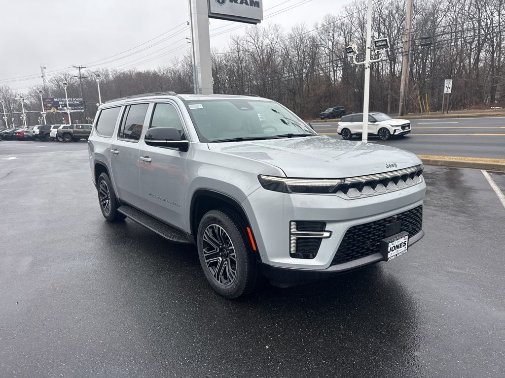 8-Passenger Seating Package (40/20/40 Row Bench Power Tip/Slide, 8-Passenger Seating, and Full Length Floor Console), Premium Group I (3 Panel Sunroof, Auto Adjust in Reverse Exterior Mirrors, Auto Power-Folding Mirrors, Auto-Dimming Exterior Driver Mirror, Auto-Power-Folding Exterior Mirrors, Exterior Mirrors Approach Lamps, Exterior Mirrors with Memory, Exterior Mirrors with Supplemental Signals, Heated Exterior Mirrors, Interior Rear Facing Camera, Luxury Front and Rear Floor Mats, P and P Park and Unpark Assist with Stop System, Reversible Carpet/Vinyl Cargo Mat, Side Distance Warning, and Surround View Camera System), Quick Order Package 29E Grand Wagoneer, 118 MPH Maximum Speed Calibration, 3.55 Rear Axle Ratio, 3rd row seats: bench, 4-Wheel Disc Brakes, 9 Speakers, ABS brakes, Air Conditioning, Alloy wheels, AM/FM radio: SiriusXM with 360L, Anti-whiplash front head restraints, Apple CarPlay/Android Auto, Audio memory, Auto High-beam Headlights, Auto-dimming door mirrors, Auto-dimming Rear-View mirror, Auto-leveling suspension, Automatic temperature control, Black Exterior Accents, Brake assist, Bumpers: body-color, Compass, Delay-off headlights, Driver door bin, Driver vanity mirror, Driver's Seat Mounted Armrest, Dual front impact airbags, Dual front side impact airbags, Electronic Stability Control, Emergency communication system: Jeep Connect, Exterior Parking Camera Rear, Four wheel independent suspension, Front anti-roll bar, Front Bucket Seats, Front Center Armrest w/Storage, Front dual zone A/C, Front fog lights, Front reading lights, Fully automatic headlights, Garage door transmitter, Heated door mirrors, Heated front seats, Heated steering wheel, Illuminated entry, Knee airbag, Low tire pressure warning, Memory seat, Navigation System, Normal Duty Suspension, Occupant sensing airbag, Outside temperature display, Overhead airbag, Overhead console, Panic alarm, Passenger door bin, Passenger seat mounted armrest, Passenger vanity mirror, Power door mirrors, Power driver seat, Power Liftgate, Power passenger seat, Power steering, Power windows, Radio data system, Radio: Uconnect 5 Nav with 12" Display, Rain sensing wipers, Rear air conditioning, Rear anti-roll bar, Rear reading lights, Rear seat center armrest, Rear window defroster, Rear window wiper, Reclining 3rd row seat, Remote keyless entry, Security system, Speed control, Speed-sensing steering, Speed-Sensitive Wipers, Split folding rear seat, Steering wheel memory, Steering wheel mounted audio controls, Tachometer, Telescoping steering wheel, Tilt steering wheel, Traction control, Trip computer, Turn signal indicator mirrors, Variably intermittent wipers, Ventilated front seats, Voltmeter, and Wheels: 20" x 9.0" Machine Face Painted Aluminum.