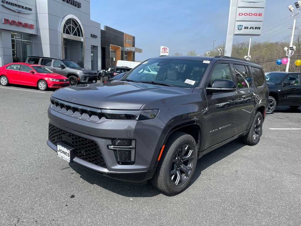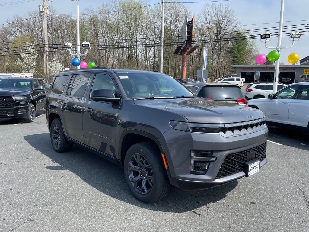 Altitude Appearance Package, Premium Group II (19 Speaker McIntosh Audio System, 3 Panel Sunroof, Cargo Cover, Interior Rear Facing Camera, Luxury Front and Rear Floor Mats, Power Deployable Running Boards, and Reversible Carpet/Vinyl Cargo Mat), Quick Order Package 29X Altitude (Black Exterior Accents, Titanium Daylight Opening Upper, Titanium Upper Grille Applique, and Wheels: 20" x 9" Aluminum Painted), 118 Mph Maximum Speed Calibration, 3.55 Rear Axle Ratio, 3rd row seats: bench, 4-Wheel Disc Brakes, 9 Speakers, ABS brakes, Air Conditioning, Alloy wheels, AM/FM radio: SiriusXM with 360L, Anti-whiplash front head restraints, Apple CarPlay/Android Auto, Audio memory, Auto Adjust in Reverse Exterior Mirrors, Auto High-beam Headlights, Auto-dimming door mirrors, Auto-Dimming Exterior Driver Mirror, Auto-dimming Rear-View mirror, Auto-leveling suspension, Automatic temperature control, Brake assist, Bumpers: body-color, Compass, Delay-off headlights, Driver door bin, Driver vanity mirror, Driver's Seat Mounted Armrest, Dual front impact airbags, Dual front side impact airbags, Electronic Stability Control, Emergency communication system: Jeep Connect, Exterior Mirrors Approach Lamps, Exterior Mirrors with Memory, Exterior Mirrors with Supplemental Signals, Exterior Parking Camera Rear, Four wheel independent suspension, Front anti-roll bar, Front Bucket Seats, Front Center Armrest w/Storage, Front dual zone A/C, Front fog lights, Front reading lights, Fully automatic headlights, Garage door transmitter, Heated door mirrors, Heated Exterior Mirrors, Heated front seats, Heated rear seats, Heated steering wheel, Illuminated entry, Knee airbag, Leather Trimmed Bucket Seats, Low tire pressure warning, Memory seat, MyFlexCare Service Plan, Navigation System, Normal Duty Suspension, Occupant sensing airbag, Outside temperature display, Overhead airbag, Overhead console, Panic alarm, Passenger door bin, Passenger seat mounted armrest, Passenger vanity mirror, Power door mirrors, Power driver seat, Power Liftgate, Power passenger seat, Power steering, Power windows, Radio data system, Radio: Uconnect 5 Nav with 12.0" Display, Rain sensing wipers, Rear air conditioning, Rear anti-roll bar, Rear reading lights, Rear seat center armrest, Rear window defroster, Rear window wiper, Reclining 3rd row seat, Remote keyless entry, Security system, Speed control, Speed-sensing steering, Speed-Sensitive Wipers, Split folding rear seat, Steering wheel memory, Steering wheel mounted audio controls, Tachometer, Telescoping steering wheel, Tilt steering wheel, Traction control, Trip computer, Turn signal indicator mirrors, Variably intermittent wipers, Ventilated front seats, Ventilated rear seats, and Voltmeter.