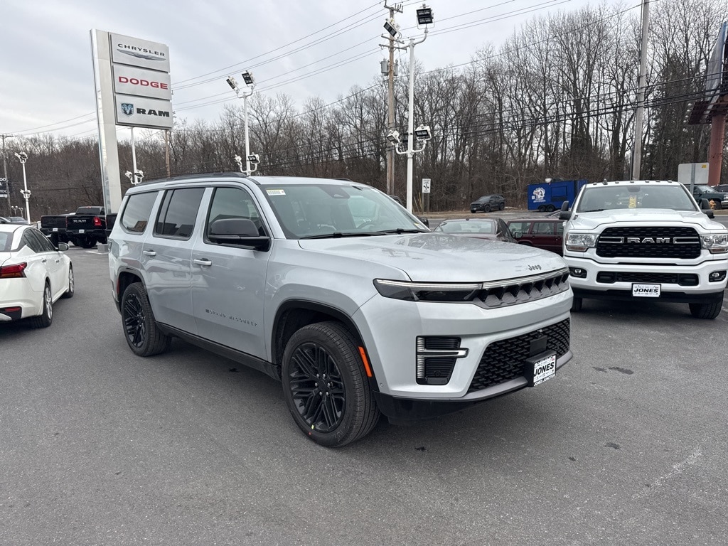 8-Passenger Seating Package (40/20/40 Row Bench Power Tip/Slide, 8-Passenger Seating, and Full Length Floor Console), Black Appearance Package (118 Mph Maximum Speed Calibration, Black Exterior Accents, Titanium Daylight Opening Upper, Titanium Upper Grille Applique, and Wheels: 22" x 9" Painted Gloss Black), Limited Reserve Package, Quick Order Package 29D Reserve (19 Speaker McIntosh Audio System, 2nd Row Manual Window Shades, 3 Panel Sunroof, Cargo Cover, Cluster 12" TFT Color Display, Heads-Up Display, Instrument Panel, Interior Rear Facing Camera, Luxury Front and Rear Floor Mats, P and P Park and Unpark Assist with Stop System, Power Deployable Running Boards, Quadra-Lift Air Suspension, Reversible Carpet/Vinyl Cargo Mat, Semi Active Damping, Side Distance Warning, Smartphone as a Key Prep, and Surround View Camera System), Rear Seat Video Group I (Amazon Fire TV Built-in, Seatback Video Screens, and Video USB Port), 3.55 Rear Axle Ratio, 3rd row seats: bench, 4-Wheel Disc Brakes, 9 Speakers, ABS brakes, Air Conditioning, Alloy wheels, AM/FM radio: SiriusXM with 360L, Anti-whiplash front head restraints, Apple CarPlay/Android Auto, Audio memory, Auto Adjust in Reverse Exterior Mirrors, Auto High-beam Headlights, Auto-dimming door mirrors, Auto-Dimming Exterior Driver Mirror, Auto-dimming Rear-View mirror, Auto-leveling suspension, Automatic temperature control, Brake assist, Bumpers: body-color, Compass, Delay-off headlights, Driver door bin, Driver vanity mirror, Driver's Seat Mounted Armrest, Dual front impact airbags, Dual front side impact airbags, Electronic Stability Control, Emergency communication system: Jeep Connect, Exterior Mirrors Approach Lamps, Exterior Mirrors with Memory, Exterior Mirrors with Supplemental Signals, Exterior Parking Camera Rear, Four wheel independent suspension, Front anti-roll bar, Front Bucket Seats, Front Center Armrest w/Storage, Front dual zone A/C, Front fog lights, Front reading lights, Fully automatic headlights, Garage door transmitter, Heated door mirrors, Heated Exterior Mirrors, Heated front seats, Heated rear seats, Heated steering wheel, Illuminated entry, Knee airbag, Leather Trimmed Bucket Seats, Low tire pressure warning, Memory seat, Navigation System, Normal Duty Suspension, Occupant sensing airbag, Outside temperature display, Overhead airbag, Overhead console, Panic alarm, Passenger door bin, Passenger seat mounted armrest, Passenger vanity mirror, Power door mirrors, Power driver seat, Power Liftgate, Power passenger seat, Power steering, Power windows, Radio data system, Radio: Uconnect 5 Nav with 12.0" Display, Rain sensing wipers, Rear air conditioning, Rear anti-roll bar, Rear reading lights, Rear seat center armrest, Rear window defroster, Rear window wiper, Reclining 3rd row seat, Remote keyless entry, Security system, Speed control, Speed-sensing steering, Speed-Sensitive Wipers, Split folding rear seat, Steering wheel memory, Steering wheel mounted audio controls, Tachometer, Telescoping steering wheel, Tilt steering wheel, Traction control, Trip computer, Turn signal indicator mirrors, Variably intermittent wipers, Ventilated front seats, Ventilated rear seats, and Voltmeter.