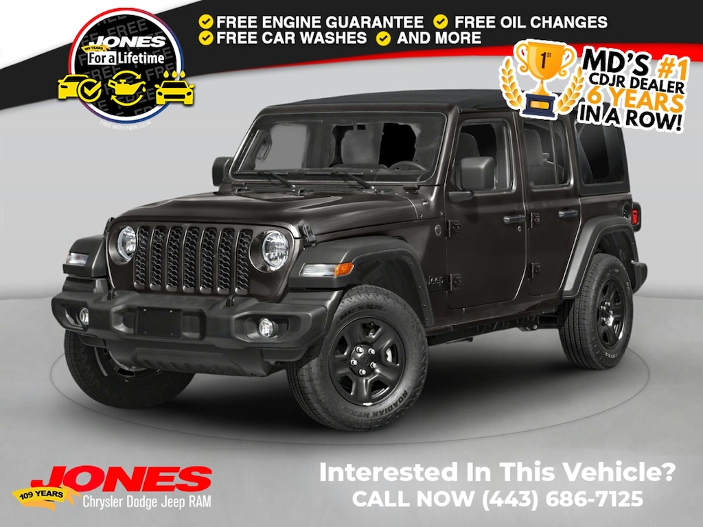 Quick Order Package 24G, 12.3" Touchscreen Display, 3.45 Overall Top Gear Ratio, 4-Wheel Disc Brakes, 4G LTE Wi-Fi Hot Spot, 8 Speakers, ABS brakes, Air Conditioning, Alloy wheels, AM/FM radio: SiriusXM with 360L, Apple CarPlay, Apple CarPlay/Android Auto, Automatic temperature control, Aux Battery, Brake assist, Cloth Low-Back Bucket Seats, Compass, Connectivity - US/Canada, Delay-off headlights, Driver door bin, Driver vanity mirror, Dual front impact airbags, Dual front side impact airbags, Electronic Stability Control, Emergency communication system: Jeep Connect, For More Info, Call 800-643-2112, Front anti-roll bar, Front Bucket Seats, Front Center Armrest w/Storage, Front dual zone A/C, Front fog lights, Front License Plate Bracket, Front reading lights, Fully automatic headlights, Google Android Auto, Heated door mirrors, Heated front seats, Heated steering wheel, Heavy Duty Suspension with Gas Shocks, Illuminated entry, Integrated Center Stack Radio, Integrated roll-over protection, Low tire pressure warning, MOPAR All-Weather Floor Mats, Myflexcare Service Plan, Non-Lock Fuel Cap Without Discriminator, Occupant sensing airbag, Outside temperature display, Overhead airbag, Panic alarm, ParkView Rear Back-Up Camera, Passenger door bin, Passenger vanity mirror, Power door mirrors, Power steering, Power Top Quarter Window Storage Bag, Power windows, Radio data system, Radio: Uconnect 5 with 12.3" Display, Rear anti-roll bar, Rear reading lights, Rear Window Defroster, Rear Window Wiper/Washer, Remote keyless entry, Removable Rear Quarter Windows, Security system, SiriusXM Radio Service, SiriusXM with 360L, Sky One-Touch Power Top, Speed control, Split folding rear seat, Steering wheel mounted audio controls, Stop-Start Dual Battery System, Tachometer, Telescoping steering wheel, Tilt steering wheel, Traction control, Trip computer, Variably intermittent wipers, Voltmeter, and Wheels: 18" x 7.5" Machine/Painted Gray.