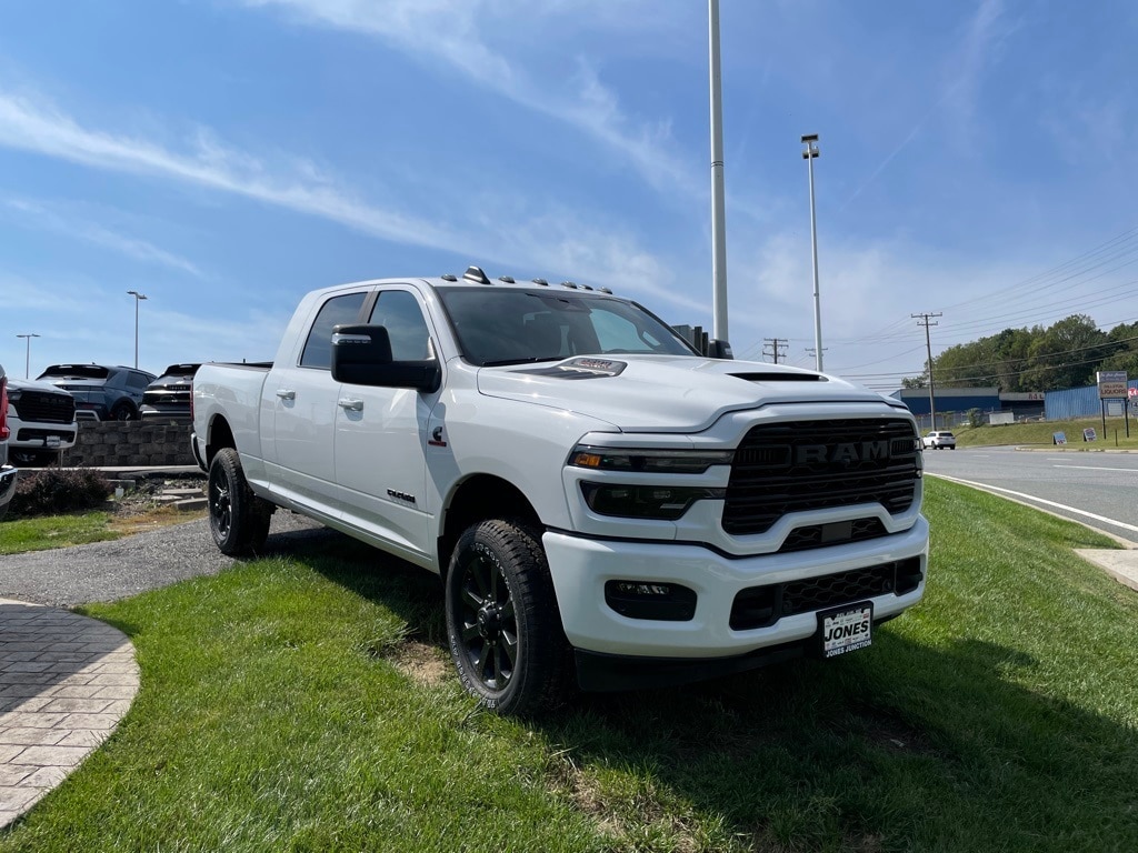 Laramie Level 1 Plus Equipment Group (#1 Seat Foam Cushion, 115V Auxiliary Rear Power Outlet, 2 Way Rear Headrest Seat, 4 Way Front Headrests, Active Lane Management System, Adaptive Steering System, Anti-Spin Differential Rear Axle, Auto Adjust In Reverse Exterior Mirrors, Auto Dim Exterior Mirror, Auto High Beam Headlamp Control, Auto Power-Folding Mirrors, Auto-Dimming Exterior Passenger Mirror, Bucket Seats, Center Stop Lamp w/Cargo View Camera, Drowsy Driver Detection, Dual Wireless Charging Pad, Exterior Mirrors Courtesy Lamps, Exterior Mirrors w/Heating Element, Exterior Mirrors w/Memory, Exterior Mirrors w/Supplemental Signals, Foam Bottle Insert (Door Trim Panel), Forward & Reverse Utility Lights, Front Seat Back Map Pockets, Full Length Upgraded Floor Console, Heated Front Seats, Heated Steering Wheel, High Back Seats, Leather Trimmed Bucket Seats, LED Bed Lighting, Mirror Running Lights, MOPAR Deployable Bed Step, MOPAR Spray In Bedliner, Power 2-Way Driver Lumbar Adjust, Power 2-Way Passenger Lumbar Adjust, Power Adjust 8-Way Driver Seat, Power Adjust 8-Way Front Passenger Seat, Power Adjust Mirrors, Power Adjustable Convex Aux Mirrors, Power Adjustable Pedals w/Memory, Power Heated Fold Telescope Mirrors w/Memory, Power Telescoping Mirrors, Radio/Driver Seat/Mirrors/Pedals Memory, Rain Sensitive Windshield Wipers, Rear 60/40 Folding Seat, Remote Tailgate Release, Traffic Sign Recognition, and Ventilated Front Seats), Night Edition (Black Exterior Truck Badging, Black Wheel Center Hub, Body Color Grille Surround, Gloss Black Grille Billets/Accents, Sport Performance Hood, and Wheels: 20" x 8" Black Painted Aluminum), Quick Order Package 24H Laramie, 10 Speakers, 3.42 Axle Ratio, 4-Wheel Disc Brakes, 4G LTE Wi-Fi Hot Spot, 5th Wheel/Gooseneck Towing Prep Group, ABS brakes, Air Conditioning, Alexa Built-In, Alloy wheels, AM/FM radio: SiriusXM with 360L, Apple CarPlay, Apple CarPlay/Android Auto, Auto-dimming Rear-View mirror, Automatic temperature control, Brake assist, Bumpers: body-color, Center Hub, Chrome Exterior Mirrors, Clearance Lamps, Compass, Connected Travel & Traffic Services, Connectivity - US/Canada, Delay-off headlights, Disassociated Touchscreen Display, Driver door bin, Driver vanity mirror, Dual front impact airbags, Dual front side impact airbags, Electronic Stability Control, Emergency Vehicle Alert System (EVAS), Front anti-roll bar, Front Center Armrest w/Storage, Front dual zone A/C, Front fog lights, Front License Plate Bracket, Front reading lights, Fully automatic headlights, Garage door transmitter, Global Telematics Box Module (TBM), Google Android Auto, GPS Antenna Input, GPS Navigation, HD Radio, Heated door mirrors, Heated front seats, Heated steering wheel, Illuminated entry, Integrated Voice Command w/Bluetooth, Leather Trim 40/20/40 Bench Seat, Low tire pressure warning, Navigation System, Occupant sensing airbag, Off-Road Information Pages, Outside temperature display, Overhead airbag, Overhead console, Panic alarm, ParkView Rear Back-Up Camera, Passenger door bin, Passenger vanity mirror, Power door mirrors, Power driver seat, Power passenger seat, Power steering, Power Sunroof, Power windows, Radio data system, Radio: Uconnect 5 Nav w/12.0" Display, Rear anti-roll bar, Rear reading lights, Rear seat center armrest, Rear step bumper, Rear window defroster, Remote keyless entry, Security system, Selectable Tire Fill Alert, SiriusXM Radio Service, SiriusXM w/360L, Speed control, Split folding rear seat, Steering wheel mounted audio controls, Tachometer, Tilt steering wheel, Traction control, Trailer Tow Pages, Trip computer, Turn signal indicator mirrors, Variably intermittent wipers, Voltmeter, and Wheels: 18" x 8" Diamond Cut Aluminum.