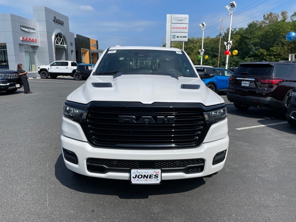 Laramie Level 2 Equipment Group (14.4" Touchscreen Display, 4G LTE Wi-Fi Hot Spot, Apple CarPlay, Cluster 12" TFT Color Display, Connected Travel & Traffic Services, Connectivity - US/Canada, Disassociated Touchscreen Display, Dual Wireless Charging Pad, Front Passenger Interactive Display, Global Telematics Box Module (TBM), Google Android Auto, GPS Antenna Input, GPS Navigation, harman/kardon 19 Speaker Premium Sound, HD Radio, Integrated Center Stack Radio, Integrated Voice Command w/Bluetooth, Power Tailgate, Radio: Uconnect 5 Nav w/14.4" Display, Rain Sensitive Windshield Wipers, Secondary Active Grille Shutters, SiriusXM Radio Service, SiriusXM w/360L, Smartphone As A Key Capable, and USB Host Flip), Night Edition (Accent Color Door Handles, Accent Color Premium Power Mirrors, Accent Color Tailgate Handle, Anti-Spin Differential Rear Axle, Auto Power-Folding Mirrors, Auto-Dimming Exterior Driver Mirror, Black Exterior Truck Badging, Black Headlamp Bezels, Black Interior Accents, Black Painted Exterior Mirrors Caps, Black Tail Lamp Bezels, Body Color Front Bumper, Body Color Rear Bumper w/Step Pads, Convex Wide-Angle Exterior Mirror Insert, Dual Exhaust w/Black Tips, Exterior Mirrors Approach Lamps, Exterior Mirrors Courtesy Lamps, Exterior Mirrors w/Heating Element, Exterior Mirrors w/Memory, Exterior Mirrors w/Supplemental Signals, Grille Surround 3 Black Texture 2 Black, Pirelli Brand Tires, Proximity Approach/Departure Lamps, RAM Grille Badge - Black, Sport Performance Hood, and Wheels: 22" x 9" Forged Aluminum), Quick Order Package 21H Laramie, 10 Speakers, 4-Wheel Disc Brakes, ABS brakes, Active Noise Control System, Air Conditioning, Alloy wheels, AM/FM radio: SiriusXM with 360L, Apple CarPlay/Android Auto, Audio memory, Auto High-beam Headlights, Auto-dimming door mirrors, Auto-dimming Rear-View mirror, Automatic temperature control, Brake assist, Bumpers: chrome, Chrome Exterior Mirrors, Compass, Delay-off headlights, Dome Dual LED Reading Lamp, Driver door bin, Driver vanity mirror, Dual front impact airbags, Dual front side impact airbags, Dual-Pane Panoramic Sunroof, Electronic Stability Control, Front anti-roll bar, Front Bucket Seats, Front Center Armrest w/Storage, Front dual zone A/C, Front fog lights, Front License Plate Bracket, Front reading lights, Front wheel independent suspension, Fully automatic headlights, Garage door transmitter, Heated door mirrors, Heated front seats, Heated rear seats, Heated steering wheel, Illuminated entry, Leather steering wheel, Leather Trimmed Bucket Seats, LED Dome/Reading Lamp, Low tire pressure warning, Memory seat, MOPAR Front & Rear Rubber Floor Mats, Navigation System, Occupant sensing airbag, Off-Road Information Pages, Outside temperature display, Overhead airbag, Overhead console, Panic alarm, ParkView Rear Back-Up Camera, Passenger door bin, Passenger vanity mirror, Power door mirrors, Power driver seat, Power passenger seat, Power steering, Power windows, Radio data system, Radio: Uconnect 5 Nav w/12.0" Display, RAM Grille Badge - Chrome, Rear anti-roll bar, Rear reading lights, Rear seat center armrest, Rear step bumper, Remote keyless entry, Security system, Speed control, Split folding rear seat, Steering wheel mounted audio controls, Tachometer, Telescoping steering wheel, Tilt steering wheel, Traction control, Trailer Brake Control, Trip computer, Turn signal indicator mirrors, Variably intermittent wipers, Ventilated front seats, Voltmeter, and Wheels: 20" x 9" Premium Paint/Polish.