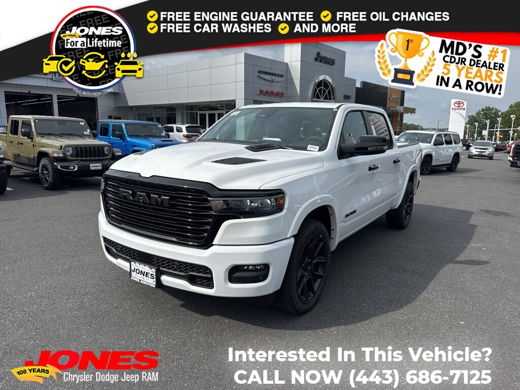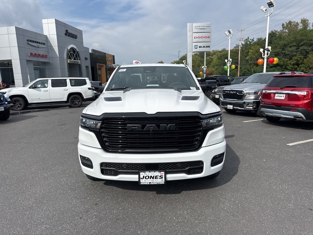 Laramie Level 2 Equipment Group (14.4" Touchscreen Display, 4G LTE Wi-Fi Hot Spot, Apple CarPlay, Cluster 12" TFT Color Display, Connected Travel & Traffic Services, Connectivity - US/Canada, Disassociated Touchscreen Display, Dual Wireless Charging Pad, Front Passenger Interactive Display, Global Telematics Box Module (TBM), Google Android Auto, GPS Antenna Input, GPS Navigation, harman/kardon 19 Speaker Premium Sound, HD Radio, Integrated Center Stack Radio, Integrated Voice Command w/Bluetooth, Power Tailgate, Radio: Uconnect 5 Nav w/14.4" Display, Rain Sensitive Windshield Wipers, Secondary Active Grille Shutters, SiriusXM Radio Service, SiriusXM w/360L, Smartphone As A Key Capable, and USB Host Flip), Night Edition (Accent Color Door Handles, Accent Color Premium Power Mirrors, Accent Color Tailgate Handle, Anti-Spin Differential Rear Axle, Auto Power-Folding Mirrors, Auto-Dimming Exterior Driver Mirror, Black Exterior Truck Badging, Black Headlamp Bezels, Black Interior Accents, Black Painted Exterior Mirrors Caps, Black Tail Lamp Bezels, Body Color Front Bumper, Body Color Rear Bumper w/Step Pads, Convex Wide-Angle Exterior Mirror Insert, Dual Exhaust w/Black Tips, Exterior Mirrors Approach Lamps, Exterior Mirrors Courtesy Lamps, Exterior Mirrors w/Heating Element, Exterior Mirrors w/Memory, Exterior Mirrors w/Supplemental Signals, Grille Surround 3 Black Texture 2 Black, Pirelli Brand Tires, Proximity Approach/Departure Lamps, RAM Grille Badge - Black, Sport Performance Hood, and Wheels: 22" x 9" Forged Aluminum), Quick Order Package 21H Laramie, 10 Speakers, 4-Wheel Disc Brakes, ABS brakes, Active Noise Control System, Air Conditioning, Alloy wheels, AM/FM radio: SiriusXM with 360L, Apple CarPlay/Android Auto, Audio memory, Auto High-beam Headlights, Auto-dimming door mirrors, Auto-dimming Rear-View mirror, Automatic temperature control, Brake assist, Bumpers: chrome, Chrome Exterior Mirrors, Compass, Delay-off headlights, Driver door bin, Driver vanity mirror, Dual front impact airbags, Dual front side impact airbags, Electronic Stability Control, Front anti-roll bar, Front Bucket Seats, Front Center Armrest w/Storage, Front dual zone A/C, Front fog lights, Front License Plate Bracket, Front reading lights, Front wheel independent suspension, Fully automatic headlights, Garage door transmitter, Heated door mirrors, Heated front seats, Heated rear seats, Heated steering wheel, Illuminated entry, Leather steering wheel, Leather Trimmed Bucket Seats, Low tire pressure warning, Memory seat, MOPAR Front & Rear Rubber Floor Mats, Navigation System, Occupant sensing airbag, Off-Road Information Pages, Outside temperature display, Overhead airbag, Overhead console, Panic alarm, ParkView Rear Back-Up Camera, Passenger door bin, Passenger vanity mirror, Power door mirrors, Power driver seat, Power passenger seat, Power steering, Power windows, Radio data system, Radio: Uconnect 5 Nav w/12.0" Display, RAM Grille Badge - Chrome, Rear anti-roll bar, Rear reading lights, Rear seat center armrest, Rear step bumper, Remote keyless entry, Security system, Speed control, Split folding rear seat, Steering wheel mounted audio controls, Tachometer, Telescoping steering wheel, Tilt steering wheel, Traction control, Trailer Brake Control, Trip computer, Turn signal indicator mirrors, Variably intermittent wipers, Ventilated front seats, Voltmeter, and Wheels: 20" x 9" Premium Paint/Polish.