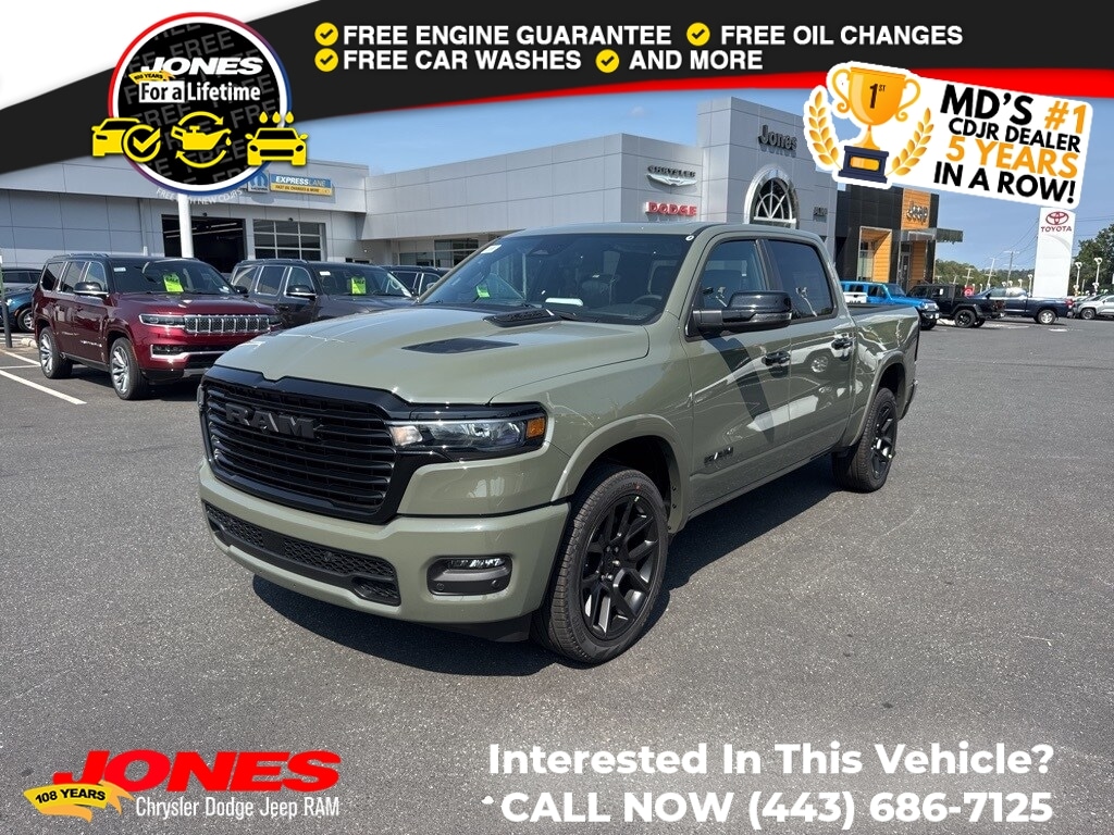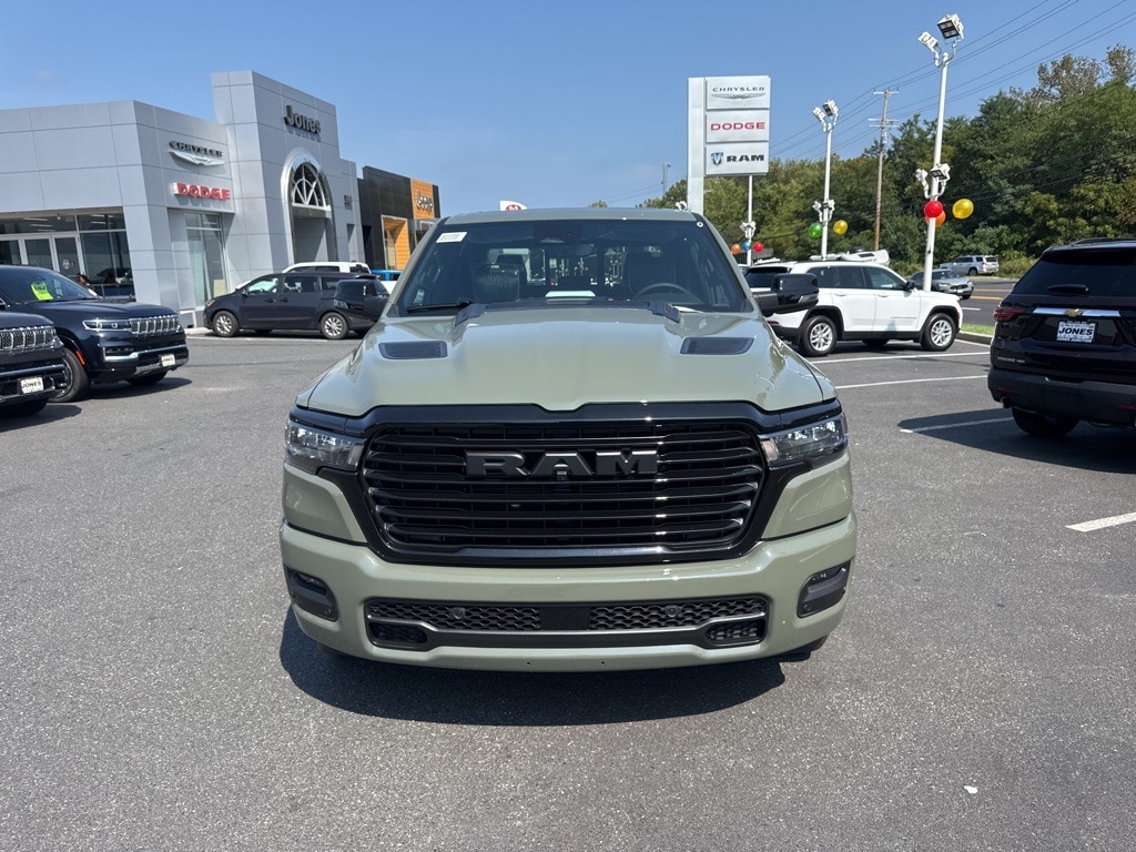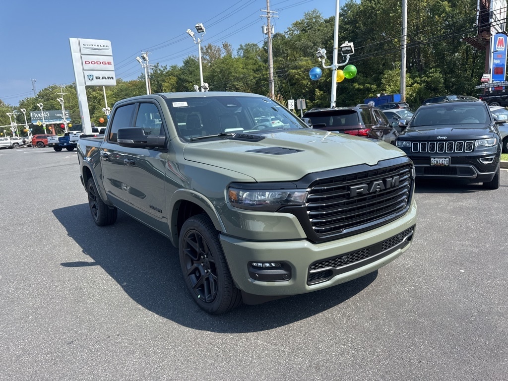 Laramie Level 2 Equipment Group (14.4" Touchscreen Display, 4G LTE Wi-Fi Hot Spot, Apple CarPlay, Cluster 12" TFT Color Display, Connected Travel & Traffic Services, Connectivity - US/Canada, Disassociated Touchscreen Display, Dual Wireless Charging Pad, Front Passenger Interactive Display, Global Telematics Box Module (TBM), Google Android Auto, GPS Antenna Input, GPS Navigation, harman/kardon 19 Speaker Premium Sound, HD Radio, Integrated Center Stack Radio, Integrated Voice Command w/Bluetooth, Power Tailgate, Radio: Uconnect 5 Nav w/14.4" Display, Rain Sensitive Windshield Wipers, Secondary Active Grille Shutters, SiriusXM Radio Service, SiriusXM w/360L, Smartphone As A Key Capable, and USB Host Flip), Night Edition (Accent Color Door Handles, Accent Color Premium Power Mirrors, Accent Color Tailgate Handle, Anti-Spin Differential Rear Axle, Auto Power-Folding Mirrors, Auto-Dimming Exterior Driver Mirror, Black Exterior Truck Badging, Black Headlamp Bezels, Black Interior Accents, Black Painted Exterior Mirrors Caps, Black Tail Lamp Bezels, Body Color Front Bumper, Body Color Rear Bumper w/Step Pads, Convex Wide-Angle Exterior Mirror Insert, Dual Exhaust w/Black Tips, Exterior Mirrors Approach Lamps, Exterior Mirrors Courtesy Lamps, Exterior Mirrors w/Heating Element, Exterior Mirrors w/Memory, Exterior Mirrors w/Supplemental Signals, Grille Surround 3 Black Texture 2 Black, Pirelli Brand Tires, Proximity Approach/Departure Lamps, RAM Grille Badge - Black, Sport Performance Hood, and Wheels: 22" x 9" Forged Aluminum), Quick Order Package 21H Laramie, 10 Speakers, 3.55 Rear Axle Ratio, 4-Wheel Disc Brakes, ABS brakes, Active Noise Control System, Air Conditioning, Alloy wheels, AM/FM radio: SiriusXM with 360L, Apple CarPlay/Android Auto, Audio memory, Auto High-beam Headlights, Auto-dimming door mirrors, Auto-dimming Rear-View mirror, Automatic temperature control, Brake assist, Bumpers: chrome, Chrome Exterior Mirrors, Compass, Delay-off headlights, Dome Dual LED Reading Lamp, Driver door bin, Driver vanity mirror, Dual front impact airbags, Dual front side impact airbags, Dual-Pane Panoramic Sunroof, Electronic Stability Control, Front anti-roll bar, Front Bucket Seats, Front Center Armrest w/Storage, Front dual zone A/C, Front fog lights, Front License Plate Bracket, Front reading lights, Front wheel independent suspension, Fully automatic headlights, Garage door transmitter, Heated door mirrors, Heated front seats, Heated rear seats, Heated steering wheel, Illuminated entry, Leather steering wheel, Leather Trimmed Bucket Seats, LED Dome/Reading Lamp, Low tire pressure warning, Memory seat, MOPAR Front & Rear Rubber Floor Mats, Navigation System, Occupant sensing airbag, Off-Road Information Pages, Outside temperature display, Overhead airbag, Overhead console, Panic alarm, ParkView Rear Back-Up Camera, Passenger door bin, Passenger vanity mirror, Power door mirrors, Power driver seat, Power passenger seat, Power steering, Power windows, Radio data system, Radio: Uconnect 5 Nav w/12.0" Display, RAM Grille Badge - Chrome, Rear anti-roll bar, Rear reading lights, Rear seat center armrest, Rear step bumper, Remote keyless entry, Security system, Speed control, Split folding rear seat, Steering wheel mounted audio controls, Tachometer, Telescoping steering wheel, Tilt steering wheel, Traction control, Trailer Brake Control, Trip computer, Turn signal indicator mirrors, Variably intermittent wipers, Ventilated front seats, Voltmeter, and Wheels: 20" x 9" Premium Paint/Polish.