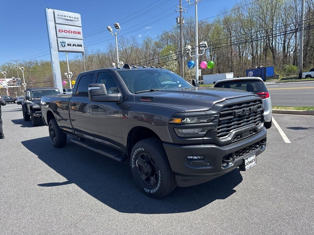 Bed Convenience Group (LED Bed Lighting and MOPAR Spray in Bedliner), Quick Order Package 24A Tradesman, Tradesman Level 1 Equipment Group (115-Volt Auxiliary Front Power Outlet, 12" Touchscreen Display, 2 Way Rear Headrest Seat, 4 Way Front Headrests, 40/20/40 Split Bench Seat, 400W Inverter, 4G LTE Wi-Fi Hot Spot, Air Conditioning ATC with Dual Zone Control, Alexa Built-in, Apple CarPlay, Auto-Dimming Rear-View Mirror, Black Exterior Mirrors, Carpet Floor Covering, Cloth 40/20/40 Bench Seat, Connected Travel and Traffic Services, Connectivity - US/Canada, Convenience Group, Disassociated Touchscreen Display, Emergency Vehicle Alert System (EVAS), Exterior 115V AC Outlet, Exterior Mirrors Courtesy Lamps, Exterior Mirrors with Heating Element, Exterior Mirrors with Supplemental Signals, For Details Visit DriveUconnect.com, For More Info, Call 800-643-2112, Front and Rear Floor Mats, Front Armrest with Cupholders, Global Telematics Box Module, Google Android Auto, GPS Antenna Input, GPS Navigation, HD Radio, Integrated Voice Command with Bluetooth, Manual Adjust 4-Way Driver Seat, Manual Adjust 4-Way Front Passenger Seat, Manual Folding Exterior Mirrors, Manual Telescoping Mirrors, Mirror Running Lights, Mopar Black Tubular Side Steps, Off-Road Information Pages, ParkSense Front/Rear Park Assist System, Power Adjust Mirrors, Power Heat Fold Telescopic Mirrors, Power-Adjustable Convex Aux Mirrors, Radio: Uconnect 5 Navigation with 12.0" Display, Rear Folding Seat, Rear Power Sliding Window, Remote USB Port - Charge Only, Selectable Tire Fill Alert, SiriusXM Radio Service, SiriusXM with 360L, Storage Tray, Tinted Acoustic Windshield Glass, and Trailer Tow Pages), 4-Wheel Disc Brakes, 50 Gallon Fuel Tank, 5th Wheel/Gooseneck Towing Prep Group, 6 Speakers, ABS brakes, Air Conditioning, AM/FM radio: SiriusXM, Apple CarPlay/Android Auto, Black Wheel Center Hub, Brake assist, Clearance Lamps, Compass, Dash Pass Thru Wire Circuits, Delay-off headlights, Driver door bin, Dual front impact airbags, Dual front side impact airbags, Electronic Stability Control, Front anti-roll bar, Front Center Armrest w/Storage, Front fog lights, Front License Plate Bracket, Front reading lights, Fully automatic headlights, Illuminated entry, Instrument Panel Mounted Auxiliary Switches, Low tire pressure warning, MOPAR Front and Rear Rubber Floor Mats, MyFlexCare Service Diesel, Occupant sensing airbag, Outside temperature display, Overhead airbag, Overhead console, Panic alarm, ParkView Rear Back-Up Camera, Passenger door bin, Passenger vanity mirror, Power steering, Power windows, Radio data system, Radio: Uconnect 5 with 8.4" Display, Rear step bumper, Rear Wheelhouse Liners, Rear window defroster, Remote keyless entry, Speed control, Tachometer, Tilt steering wheel, Traction control, Variably intermittent wipers, Voltmeter, and Wheels: 18" x 8.0" Black Painted SteeL.